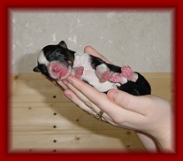 The next ones took her a bit longer, all in all she needed 4 hours for the 8 healthy and sweet puppies. It was a wonderful moment seeing this little family together, a happy mom and her satisfied children. It was a real colorful litterbox now, all in all we had four girls and four dogs, 2 red-white and tan, 2 black and white and four tricolored. The weight of them was from 280g to 360g, everything perfectly okay. After one week of drinking and sleeping all of them had doubled their weight. It was very impressing to see how Faith managed everything without any sleep during the first days, she just was dozing a bit, her job in cleaning eight puppies was really hard.