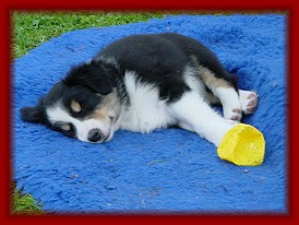 Very interesting were the trips we made with them, to a little stream, to meadows close to the forest or to the vet for their eye examination. We could tell dozens of stories about the little ones, we had so much fun with them and the eight weeks were over much too fast. We were thinking where all these days were gone as we had to give the first puppy away after 8 weeks. AJ was the first to go on a saturday, and the others left the sunday after. Andrea and me were crying a bit, but we were happy to find great people for all of them. To all the new owners all the best from us, we thank you for giving “our” pups a superb home!