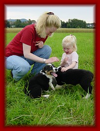 The page “A-litter” shows you the 8 lovely puppies out of the litter by Shane and Faith born at the 17.05.2002. You can see pictures of every puppy and of course we tell what they do in their new families. The link “Shanes children” leads you to some of the puppies Shane had with bitches out of other kennels. So now we hope that you enjoy your visit here and wish you lots of fun!